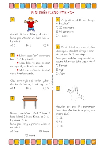 2 Y Metre kısaca “cm”, santimetre luk birimleriyle ölçmek istiyor.