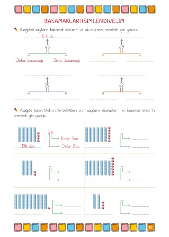 Aşağıda taban blokları ile belirtilmiş olan sayıların okunuşlarını ve basamak isimlerini