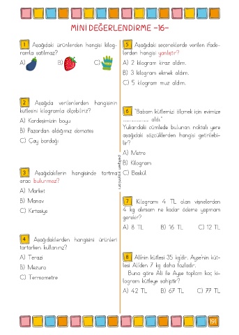 1 Aşağıdaki ürünlerden hangisi kilog- 5 Aşağıdaki seçeneklerde verilen ifade-