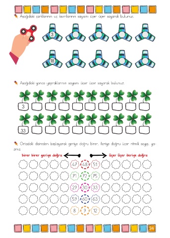 Ortadaki daireden başlayarak geriye doğru birer, ileriye doğru üçer ritmik sayıp, ya-
