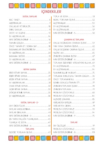 BEŞER RİTMİK SAYMA ....................................................29 ÖNCE TOPLANANI BUL, ............................................77
