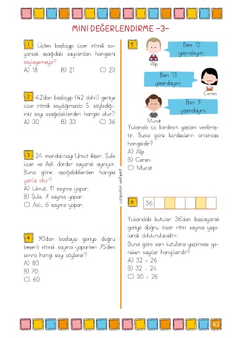 1 Üçten başlayıp üçer ritmik sa- 5 Ben 12
