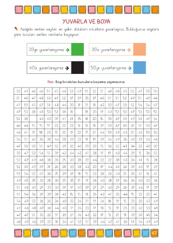 Not: Boş bırakılan kutulara boyama yapmayınız.