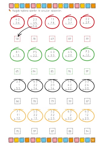 Aşağıda toplama işlemleri ile sonuçları eşleştirelim.