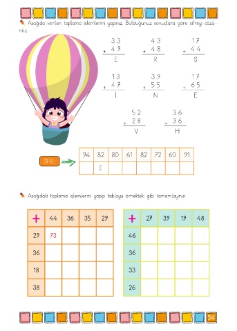 Aşağıda verilen toplama işlemlerini yapınız. Bulduğunuz sonuçlara göre şifreyi çözü-