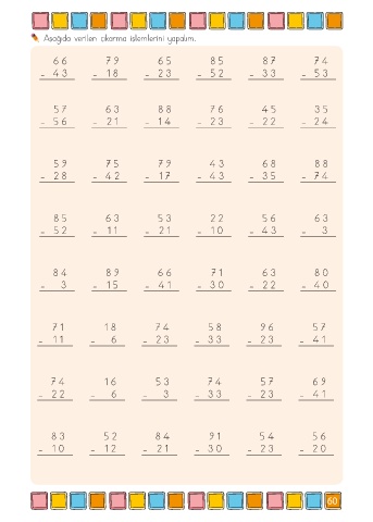 Aşağıda verilen çıkarma işlemlerini yapalım.