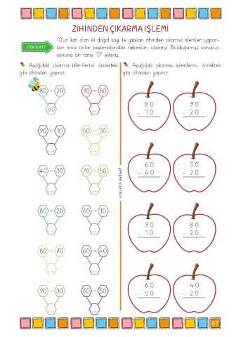 10’un katı olan iki doğal sayı ile yapılan zihinden çıkarma işlemleri yapar-