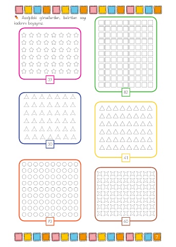 Aşağıdaki görsellerden, belirtilen sayı kadarını boyayınız. 39 82 30 41 73 60 7