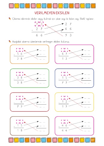 Aşağıdaki çıkarma işlemlerinde verilmeyen eksileni bulunuz.
