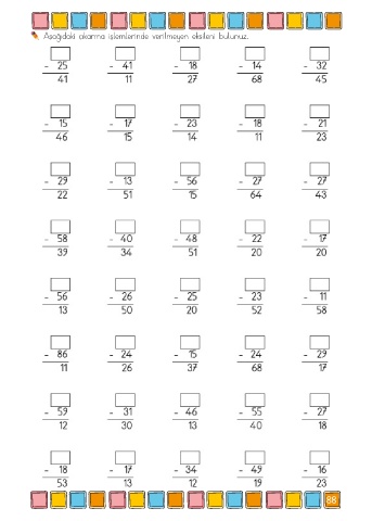 Aşağıdaki çıkarma işlemlerinde verilmeyen eksileni bulunuz. 88