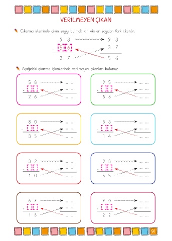 Aşağıdaki çıkarma işlemlerinde verilmeyen çıkanları bulunuz.