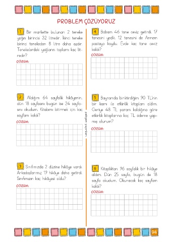 1 Bir markette bulunan 2 teneke 4 Babam 46 tane ceviz getirdi. 17