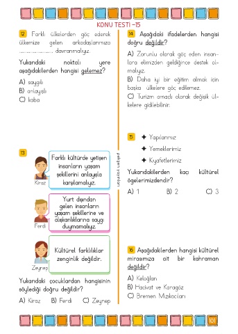 12 Farklı ülkelerden göç ederek 14 Aşağıdaki ifadelerden hangisi