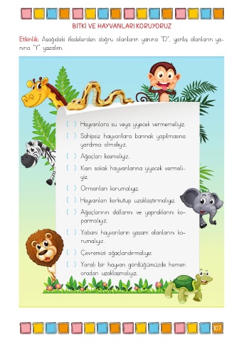 ( ) Hayvanlara su veya yiyecek vermemeliyiz.