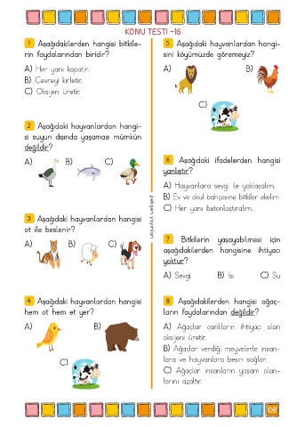 1 Aşağıdakilerden hangisi bitkile- 5 Aşağıdaki hayvanlardan hangi-