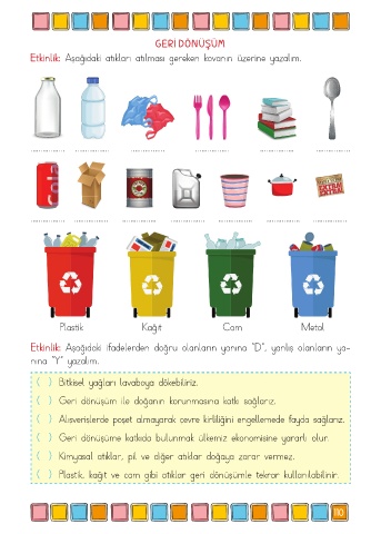 ( ) Geri dönüşüm ile doğanın korunmasına katkı sağlarız.