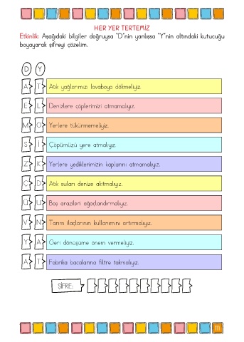 Etkinlik: Aşağıdaki bilgiler doğruysa “D”nin yanlışsa “Y”nin altındaki kutucuğu