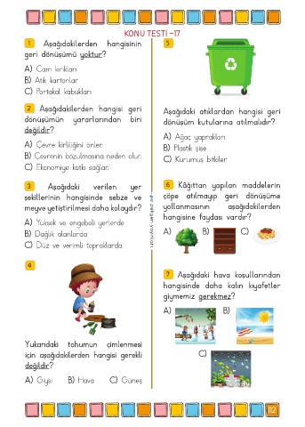 şekillerinin hangisinde sebze ve çöpe atılmayıp geri dönüşüme