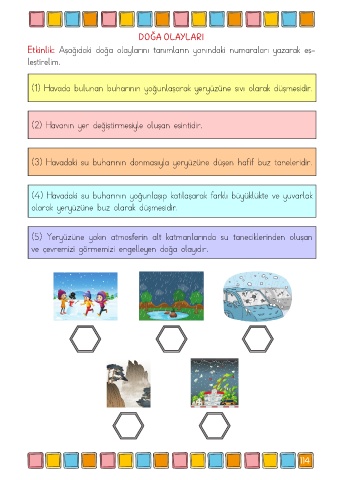 Etkinlik: Aşağıdaki doğa olaylarını tanımların yanındaki numaraları yazarak eş-