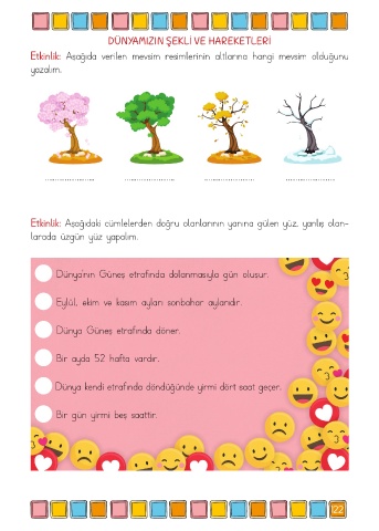 Etkinlik: Aşağıdaki cümlelerden doğru olanlarının yanına gülen yüz, yanlış olan-