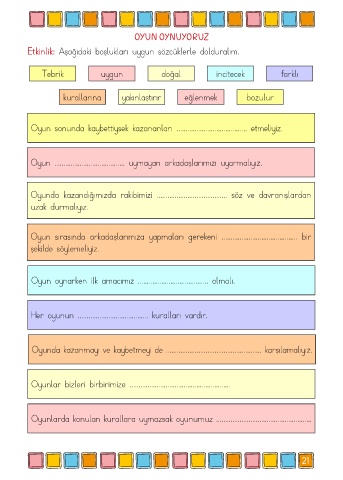 Oyun oynarken ilk amacımız ....................................... olmalı.