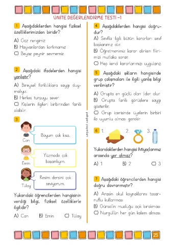ÜNİTE DEĞERLENDİRME TESTİ -1