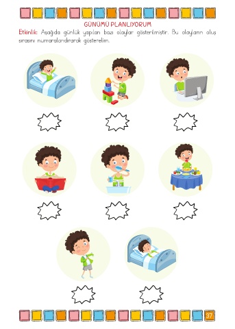 GÜNÜMÜ PLANLIYORUM Etkinlik: Aşağıda günlük yapılan bazı olaylar gösterilmiştir. Bu olayların oluş sırasını numaralandırarak gösterelim. 37