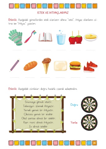 Etkinlik: Aşağıdaki görsellerden istek olanların altına “istek”, ihtiyaç olanların al-