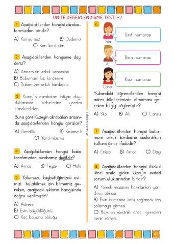 A) Amca B) Teyze C) Hala 8 Aşağıdakilerden hangisi ilkokul