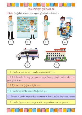 Etkinlik: Aşağıdaki açıklamaları uygun görsellerle eşleştirelim.