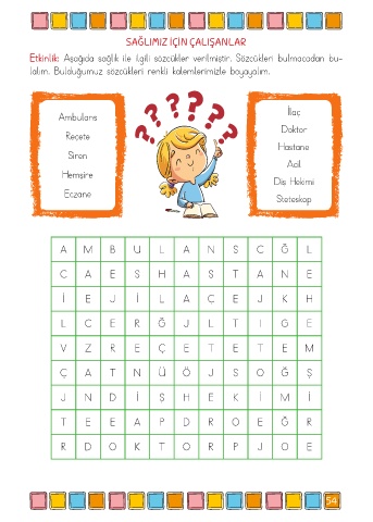Etkinlik: Aşağıda sağlık ile ilgili sözcükler verilmiştir. Sözcükleri bulmacadan bu-