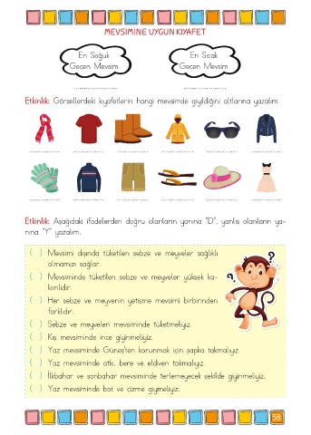 Etkinlik: Görsellerdeki kıyafetlerin hangi mevsimde giyildiğini altlarına yazalım.