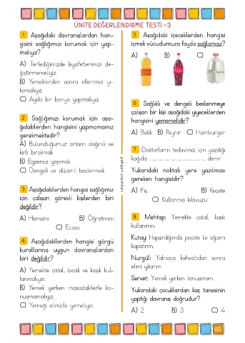 ÜNİTE DEĞERLENDİRME TESTİ -3