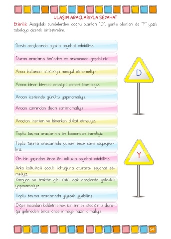 Etkinlik: Aşağıdaki cümlelerden doğru olanları “D”, yanlış olanları da “Y” yazılı