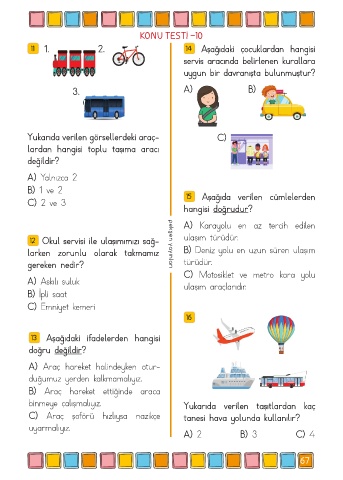 12 Okul servisi ile ulaşımımızı sağ- pekşen yayınları ulaşım türüdür.