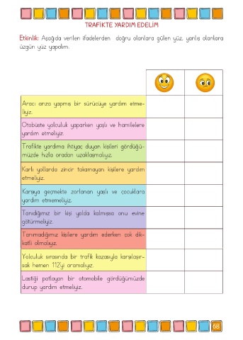 Etkinlik: Aşağıda verilen ifadelerden doğru olanlara gülen yüz, yanlış olanlara
