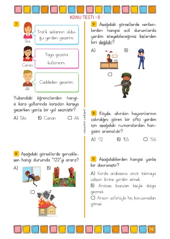 şen hangi durumda “122”yi ararız? 11 Aşağıdakilerden hangisi yanlış