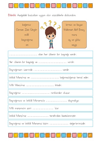 Etkinlik: Aşağıdaki boşlukları uygun olan sözcüklerle dolduralım.