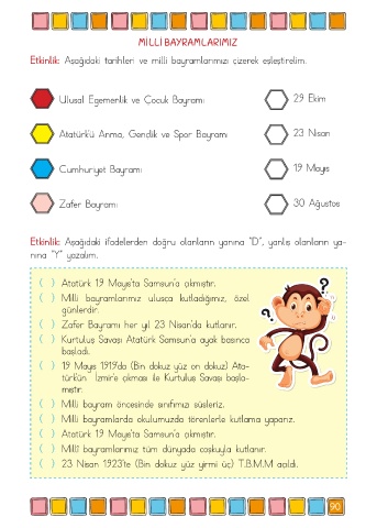 Etkinlik: Aşağıdaki tarihleri ve milli bayramlarımızı çizerek eşleştirelim.