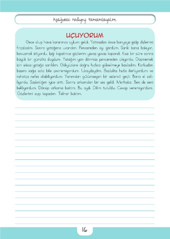 için sıkıca yatağa sarıldım. Gökyüzüne doğru hızlıca yükselmeye başladım. Korkudan
