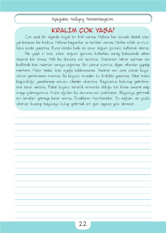 Çok uzak bir diyarda büyük bir kral varmış. Halkına her konuda destek olan