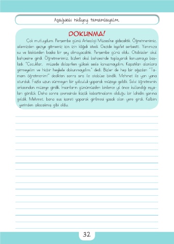 ladı. ”Çocuklar, müzede dolaşırken yüksek sesle konuşmayalım. Kapatılan alanlara