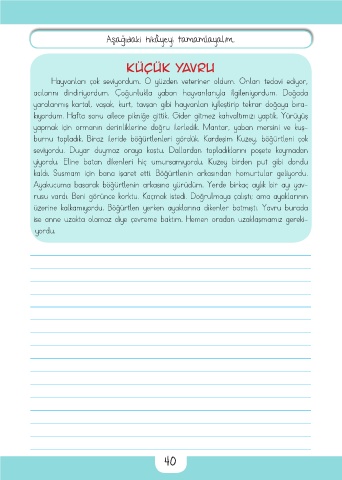 Aşağıdaki hikâyeyi tamamlayalım.