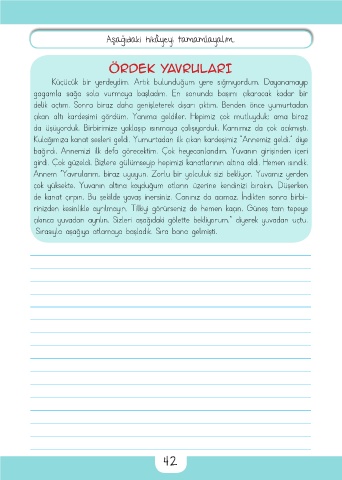 Kulağımıza kanat sesleri geldi. Yumurtadan ilk çıkan kardeşimiz “Annemiz geldi.” diye