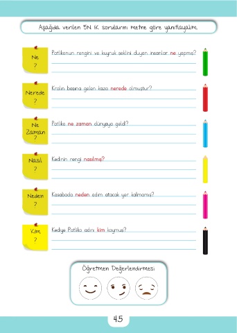 Aşağıda verilen 5N 1K sorularını metne göre yanıtlayalım.