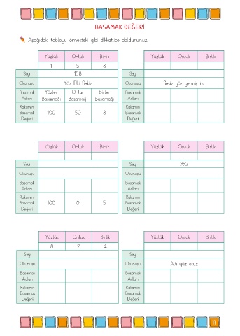 Yüzlük Onluk Birlik Yüzlük Onluk Birlik