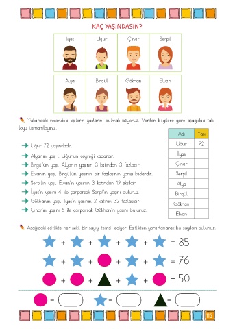 Yukarıdaki resimdeki kişilerin yaşlarını bulmak istiyoruz. Verilen bilgilere göre aşağıdaki tab-