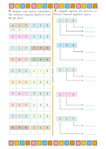 Aşağıdaki doğal sayıların basamakların- Aşağıdaki sayılarda okla gösterilen ra-