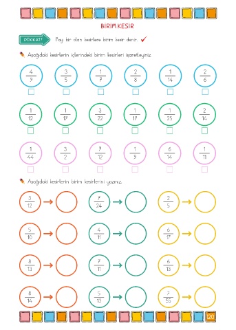 Aşağıdaki kesirlerin içlerindeki birim kesirleri işaretleyiniz.
