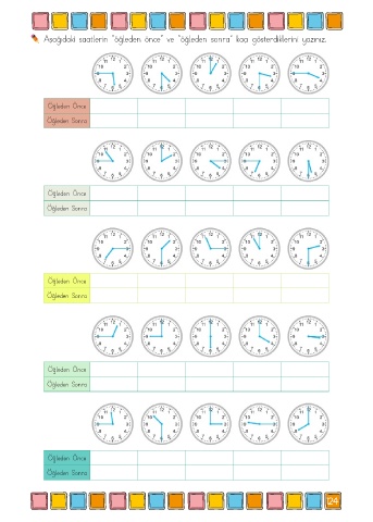 Aşağıdaki saatlerin “öğleden önce” ve “öğleden sonra” kaçı gösterdiklerini yazınız. Öğleden Önce Öğleden Sonra Öğleden Önce Öğleden Sonra Öğleden Önce Öğleden Sonra Öğleden Önce Öğleden Sonra Öğleden Önce Öğleden Sonra 124